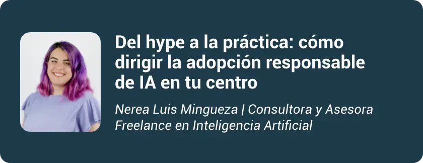 - Liderazgo con visión: claves para que los equipos directivos comprendan, adopten y guíen la transformación con IA.