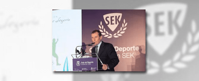 Emilio Butragueño, director de Relaciones Institucionales del Real Madrid, recogió el “Premio de la Institución Educativa SEK a la Mejor Trayectoria” e intervino con motivo del 15º aniversario del acuerdo Real Madrid-SEK para la educación de la cantera de fútbol y baloncesto del club blanco.