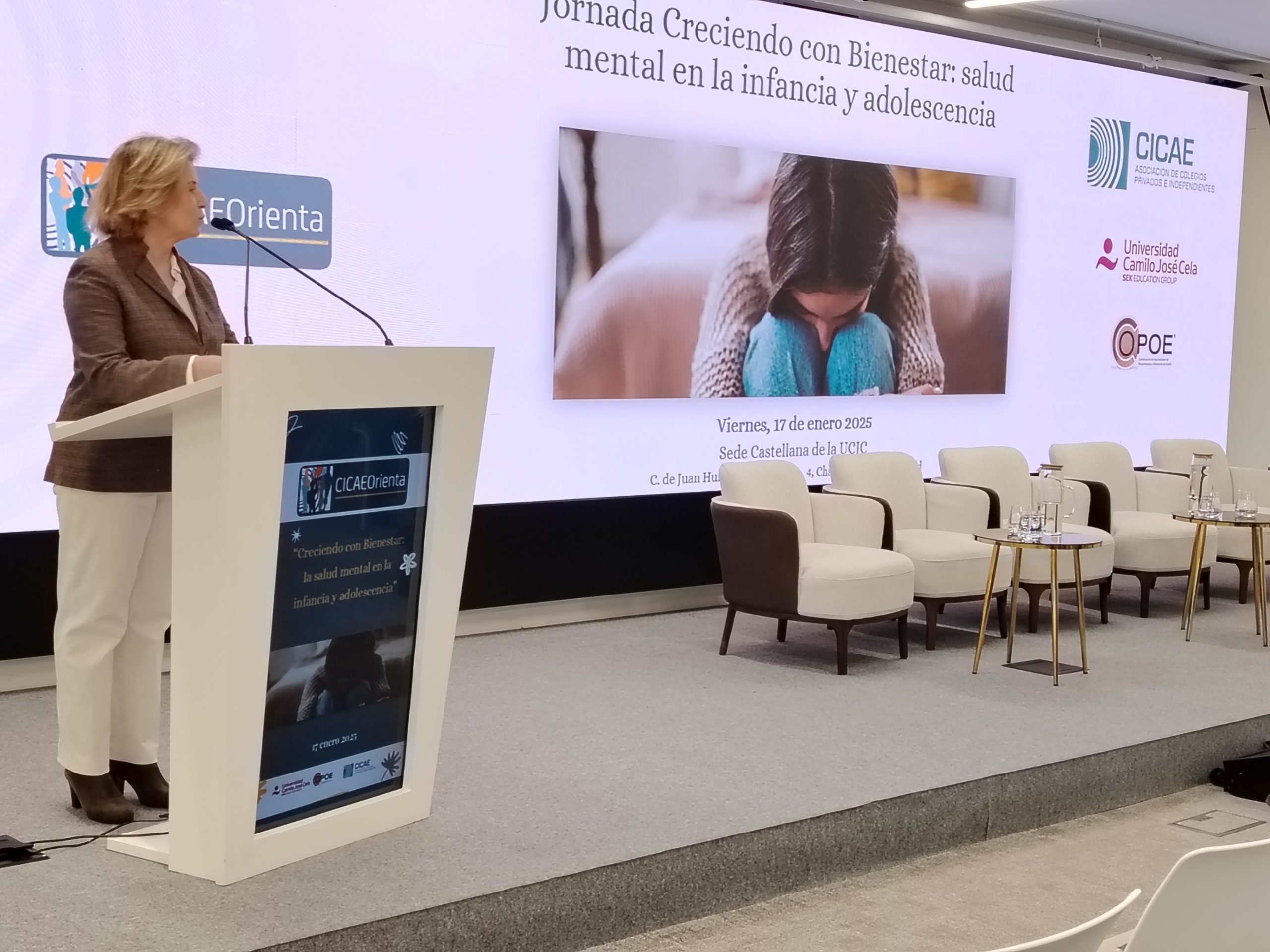 Madrid, 20 January 2025. The Association of Private and Independent Schools (CICAE), in collaboration with the Confederation of Organizations of Psychopedagogy and Guidance of Spain (COPOE), held last Friday, January 17, a conference to address the challenges of schools regarding mental health in childhood and adolescence. Under the slogan “Growing up with Well-being”, this event brought together more than 60 school counselors and mental health experts to analyze the impact of social changes on the emotional well-being of young people.